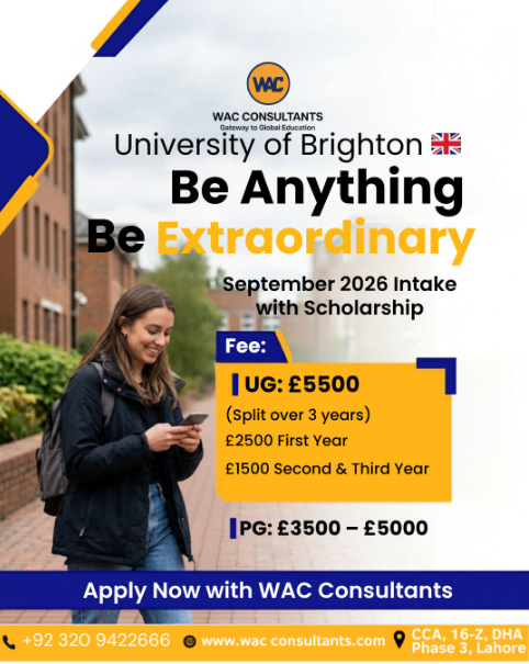 Study at University of Brighton with September 2026 intake and amazing scholarship options! 🎓 Affordable UG & PG programs 💰 Low