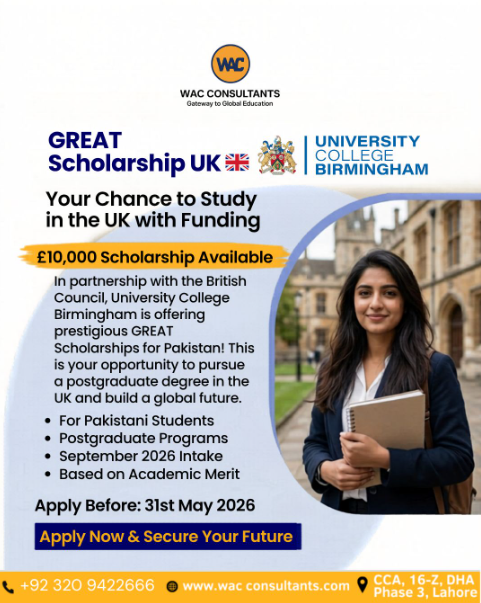 The GREAT Scholarship offers Pakistani students up to £10,000 funding for postgraduate studies at top UK universities. Don’t miss this